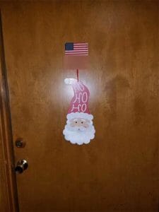 Within it I was referencing the spiritual battle that takes place every time during this year I placed up a new mascot over at ShineonJesus.com called Rudy and he says he will guide us HO, HO, HOME. I can’t make this stuff up it isn’t even “Thanksgiving” and the day after I posted Rudy I went out my front door and staring me in the face was you guessed it. On my neighbor’s door a Santa with the words Ho, Ho, Ho.